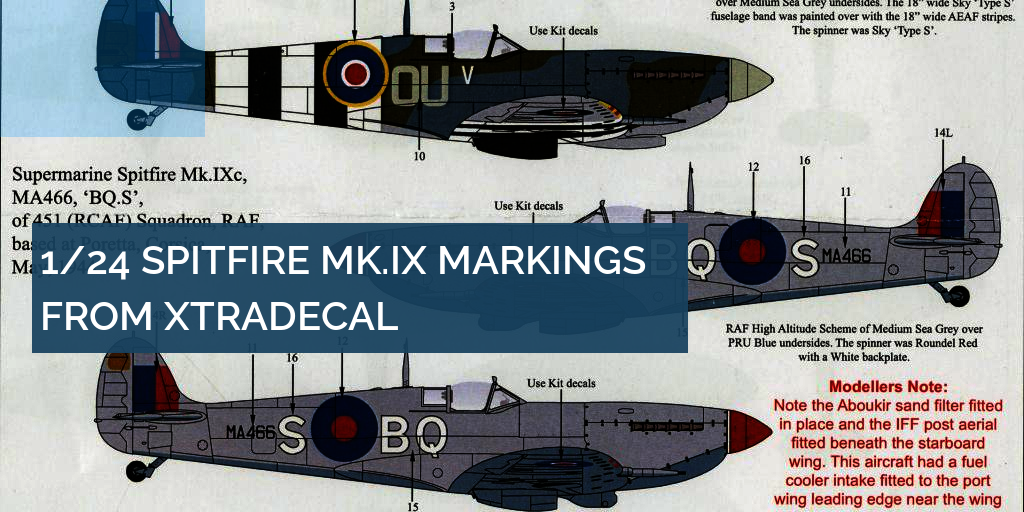 Xtradecal 1/24 Spitfire Mk.IX decals Airfix kit